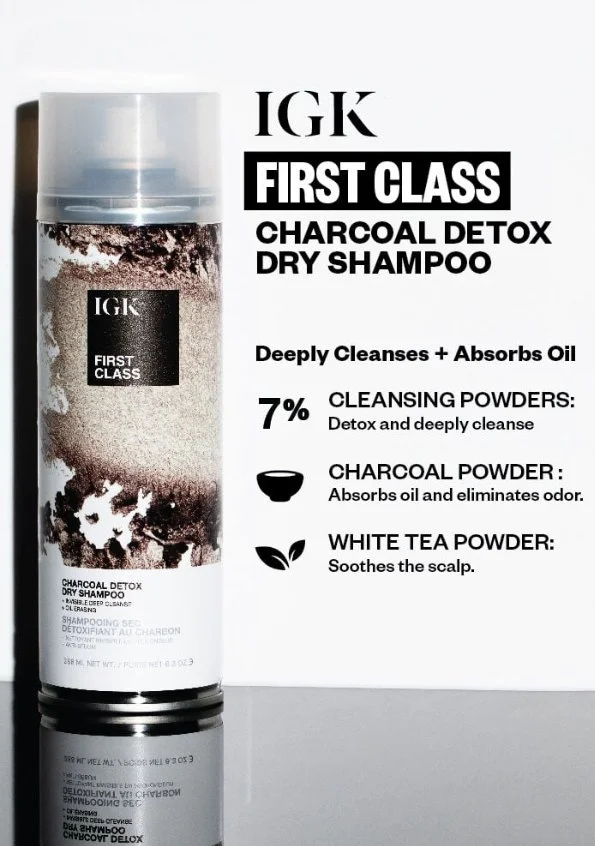 All Your Favorite Brands! › IGK First Class Charcoal Detox Dry Shampoo Image 1 of 2 Image 2 of 2 IGK First Class Charcoal Detox Dry Shampoo $32.00 6.3 ozHeavy-duty dry shampoo that detoxifies the scalp and absorbs oil for instantly refreshed hair. Quantity: Add To Cart Added! 6.3 ozHeavy-duty dry shampoo that detoxifies the scalp and absorbs oil for instantly refreshed hair.