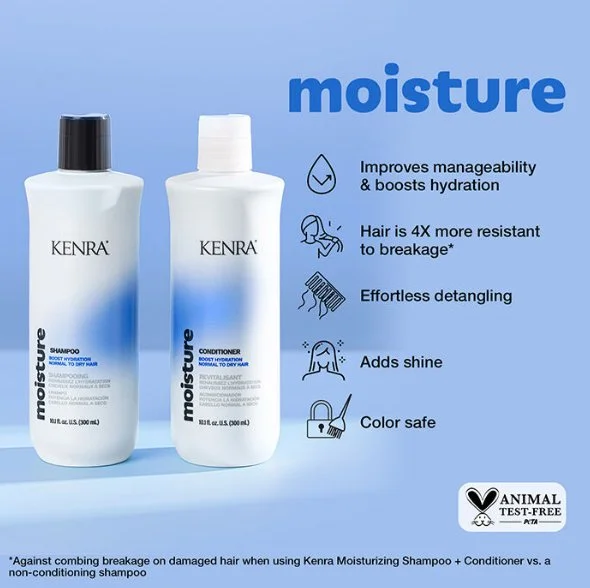 All Your Favorite Brands! › Kenra Moisturizing Shampoo + Conditioner Image 1 of 3 Image 2 of 3 Image 3 of 3 Kenra Moisturizing Shampoo + Conditioner $22.00 10.1 oz.Hydrates and smooths hair for improved manageability and shine. Shampoo / Conditioner: Shampoo Conditioner Quantity: Add To Cart Added! 10.1 oz.Hydrates and smooths hair for improved manageability and shine.