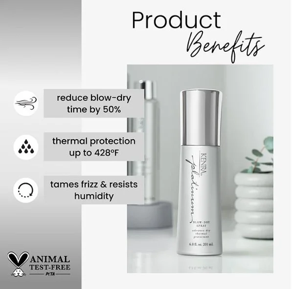 All Your Favorite Brands! › Kenra Platinum Blow-Dry Spray Image 1 of 2 Image 2 of 2 Kenra Platinum Blow-Dry Spray $28.00 6.8 oz.Reduces blow-dry time, provides intense heat protection, and adds brilliant shine. Quantity: Add To Cart Added! 6.8 oz.Reduces blow-dry time, provides intense heat protection, and adds brilliant shine.
